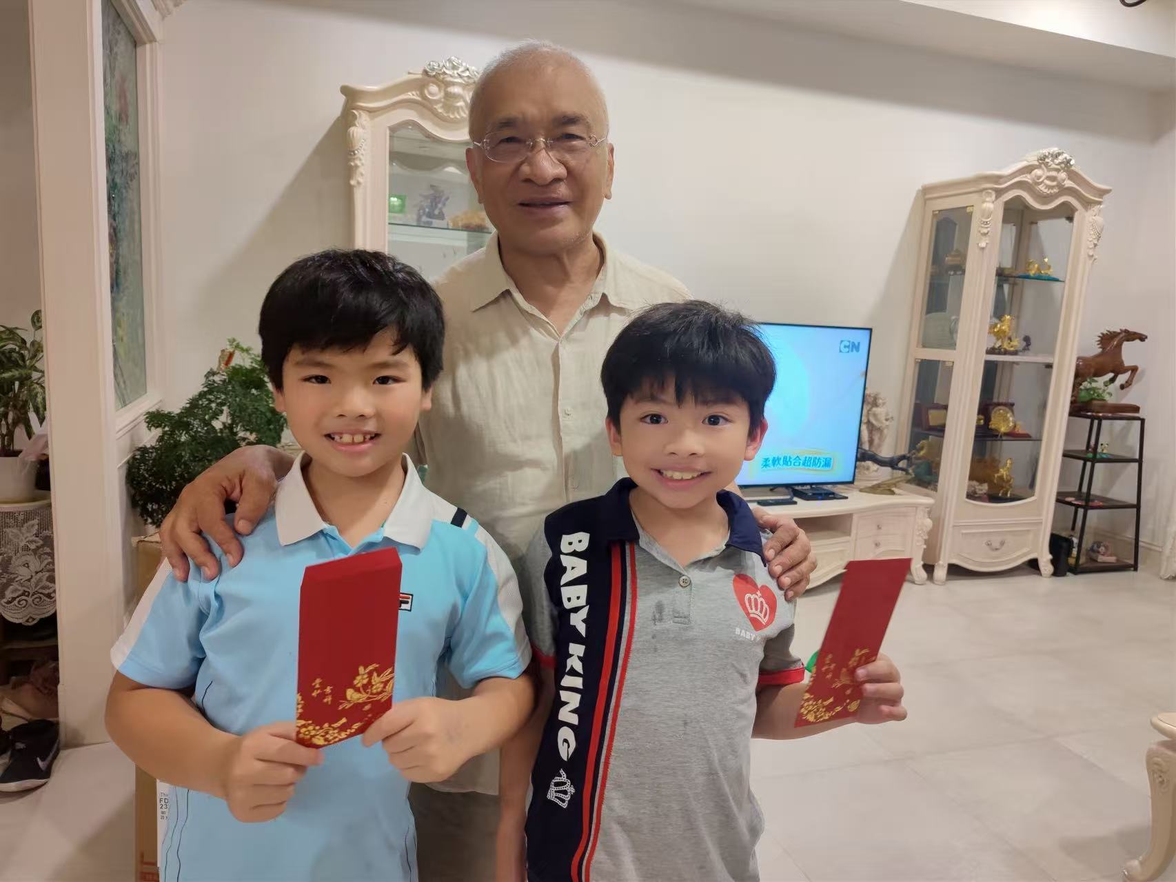 孫子與女兒分別從美國與英國返家過年